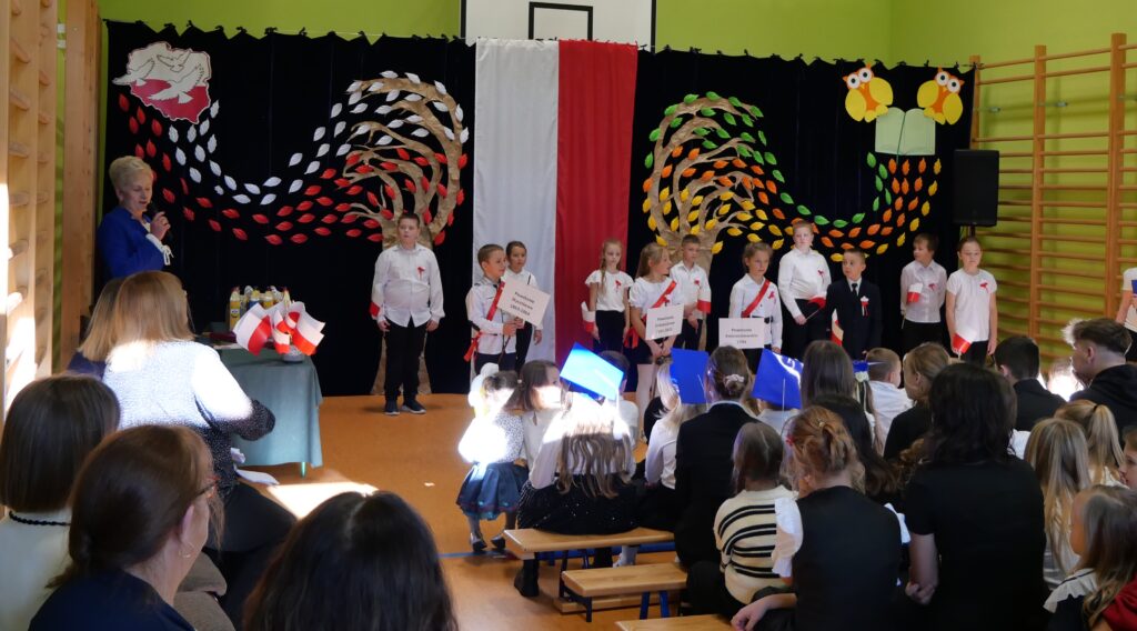 Uczniowie pięknie zaprezentowali program artystyczny – były wiersze, pieśni patriotyczne i chwile, które przypomniały nam, jak ważne są słowa „Bóg, Honor, Ojczyzna”. 🎶📜