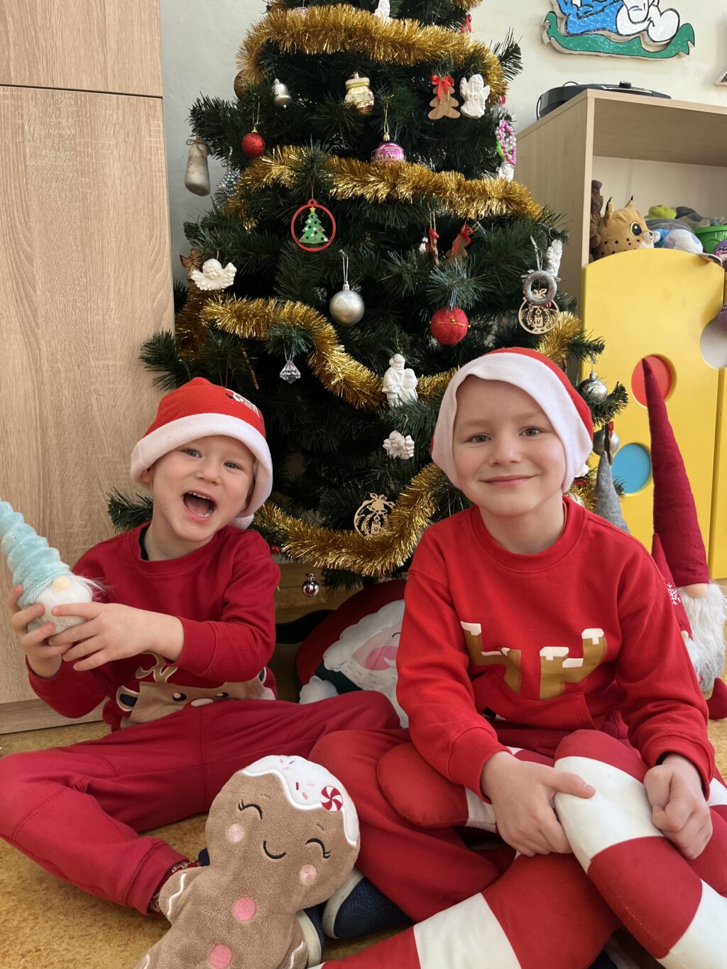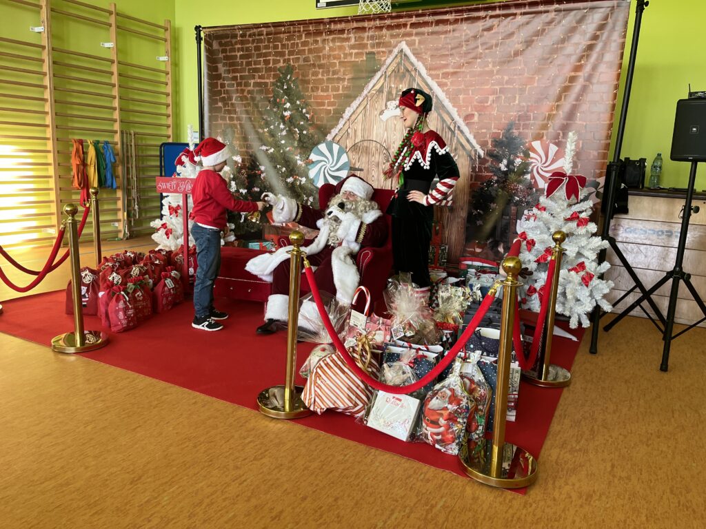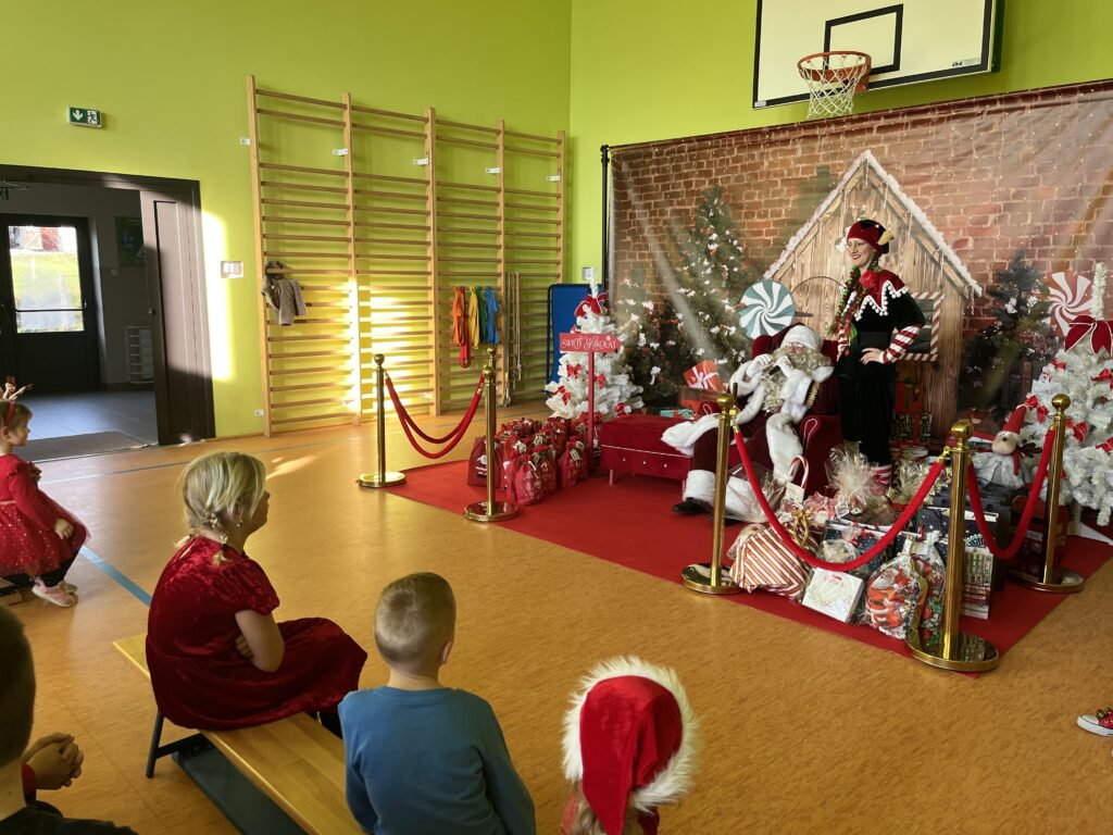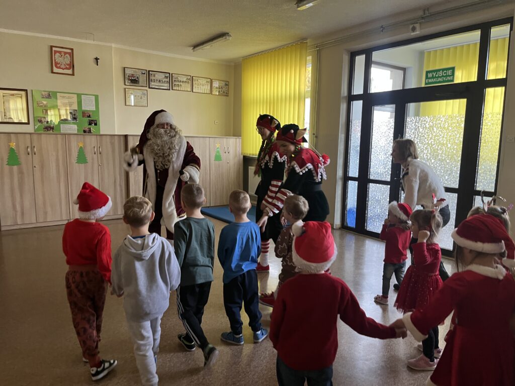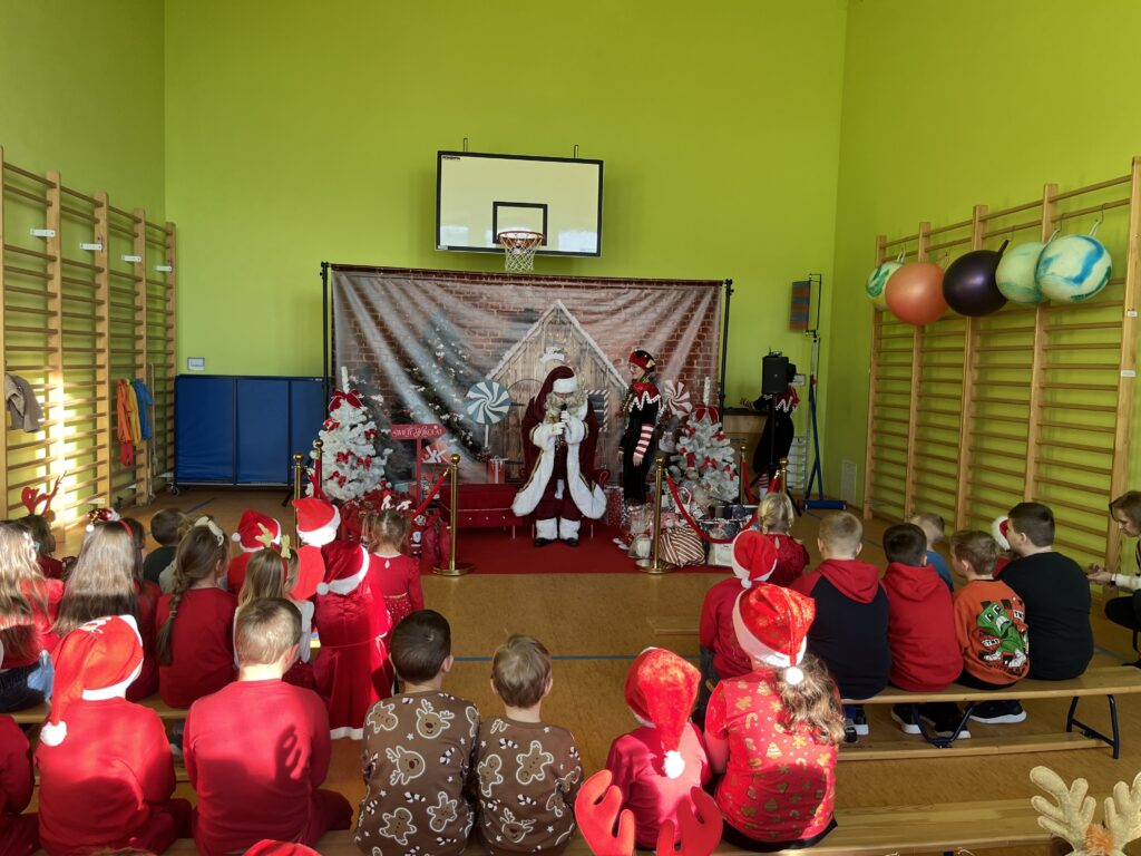 W naszej szkole zrobiło się wyjątkowo magicznie! Od samego rana uczniowie wypatrywali specjalnego gościa… i w końcu się pojawił — Święty Mikołaj we własnej osobie!![]()